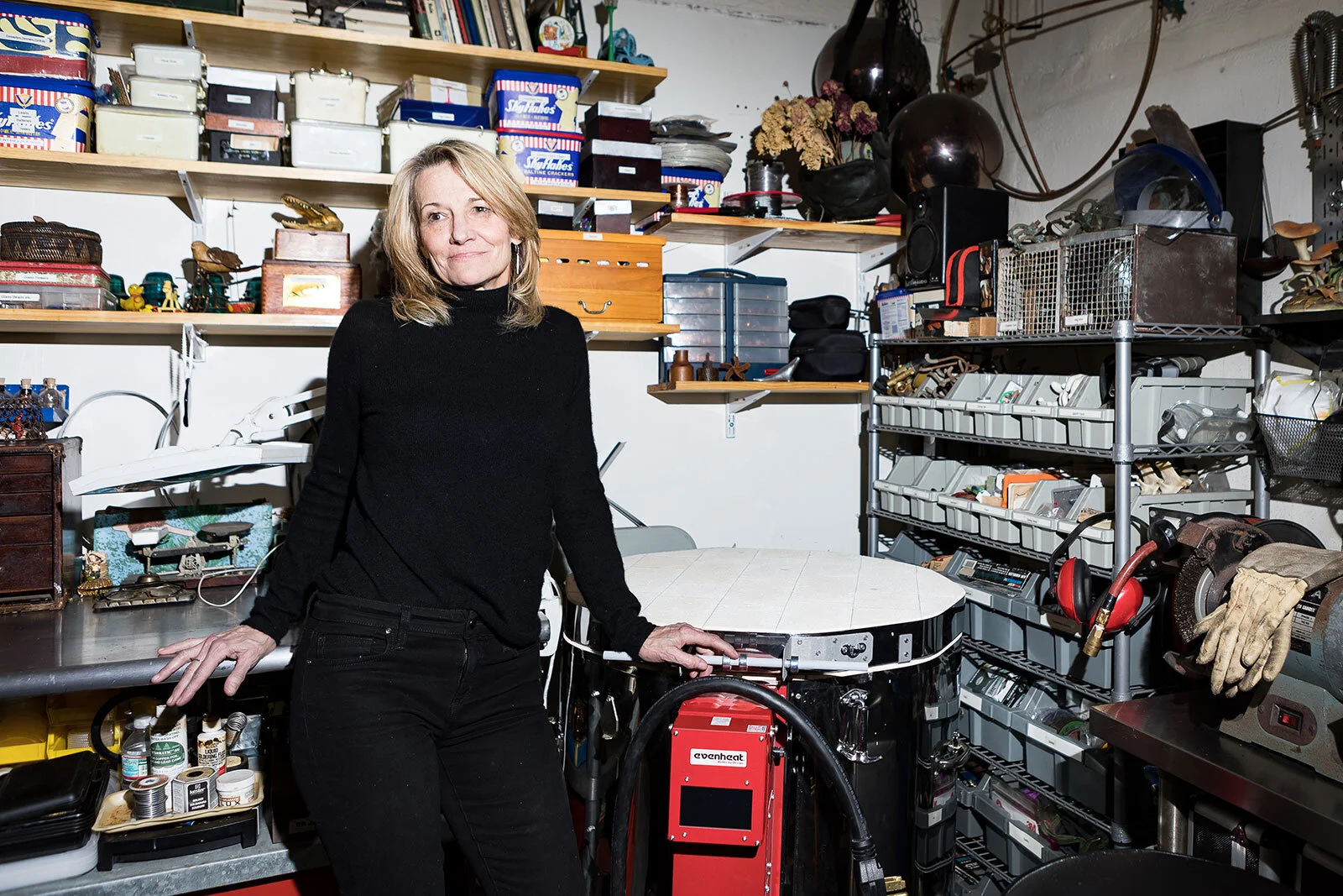 Husband and wife jewelry duo of Jack+G, Gretchen Anderson and Jack Danziger, in their Brooklyn studio.